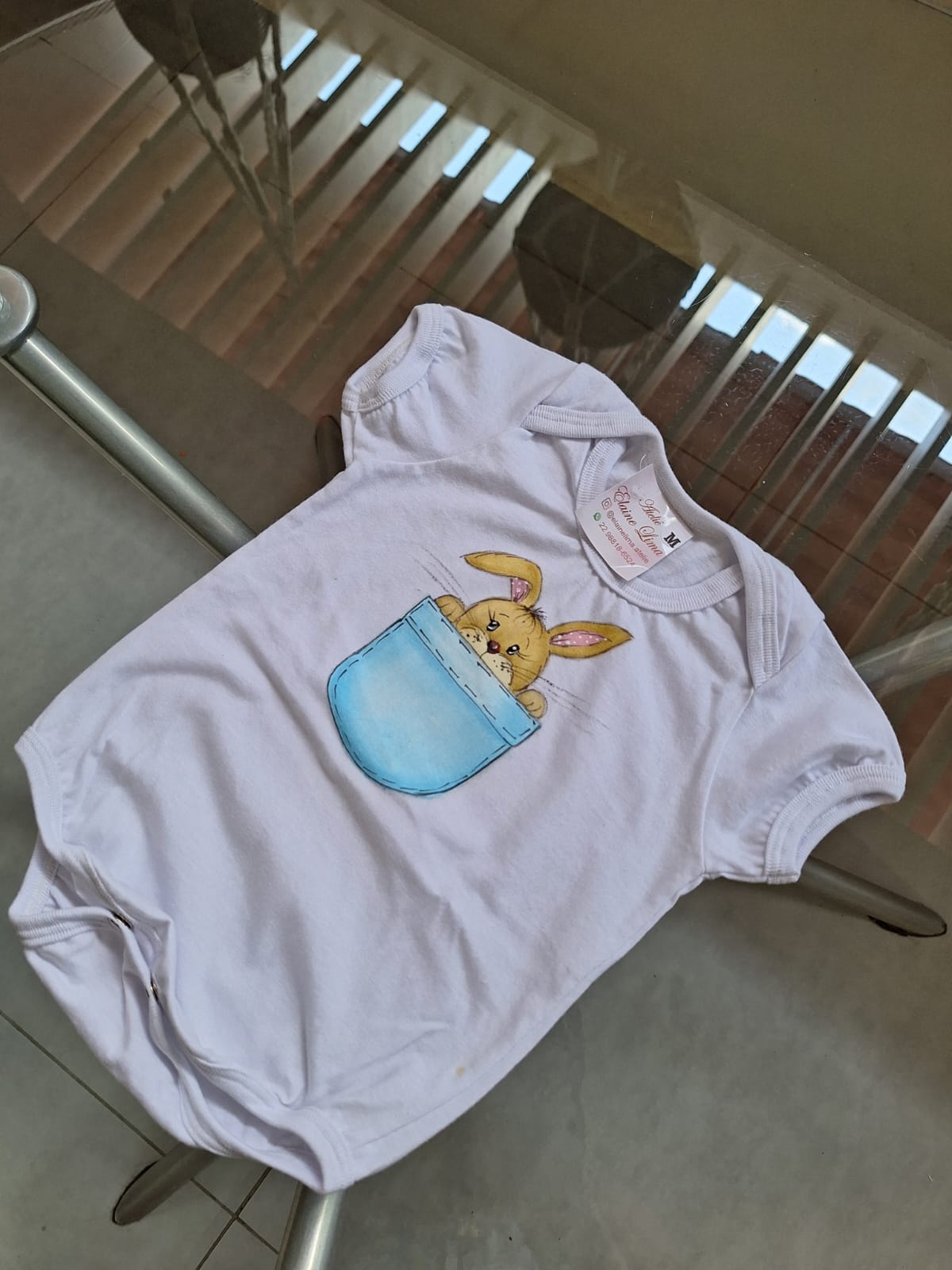 Body tamanho M, pintado a mão, 100% algodão, fabricado pelo ateliê Elaine Lima,mangas curtas, abertura nos ombros para facilitar o vestimento e abertura nas pernas para maior comodidade do seu bebê.