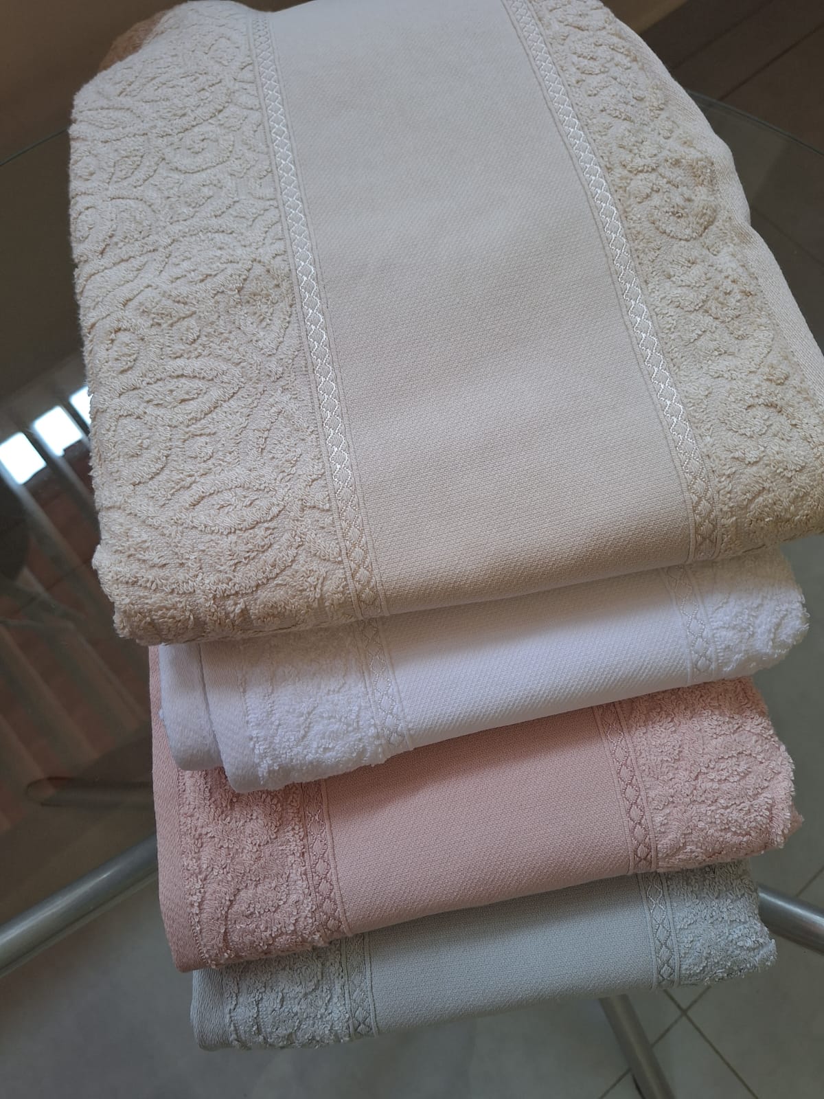 Toalha de rosto: 50 x 80 cm – ideal para mãos e rosto, mantendo suavidade e praticidade.